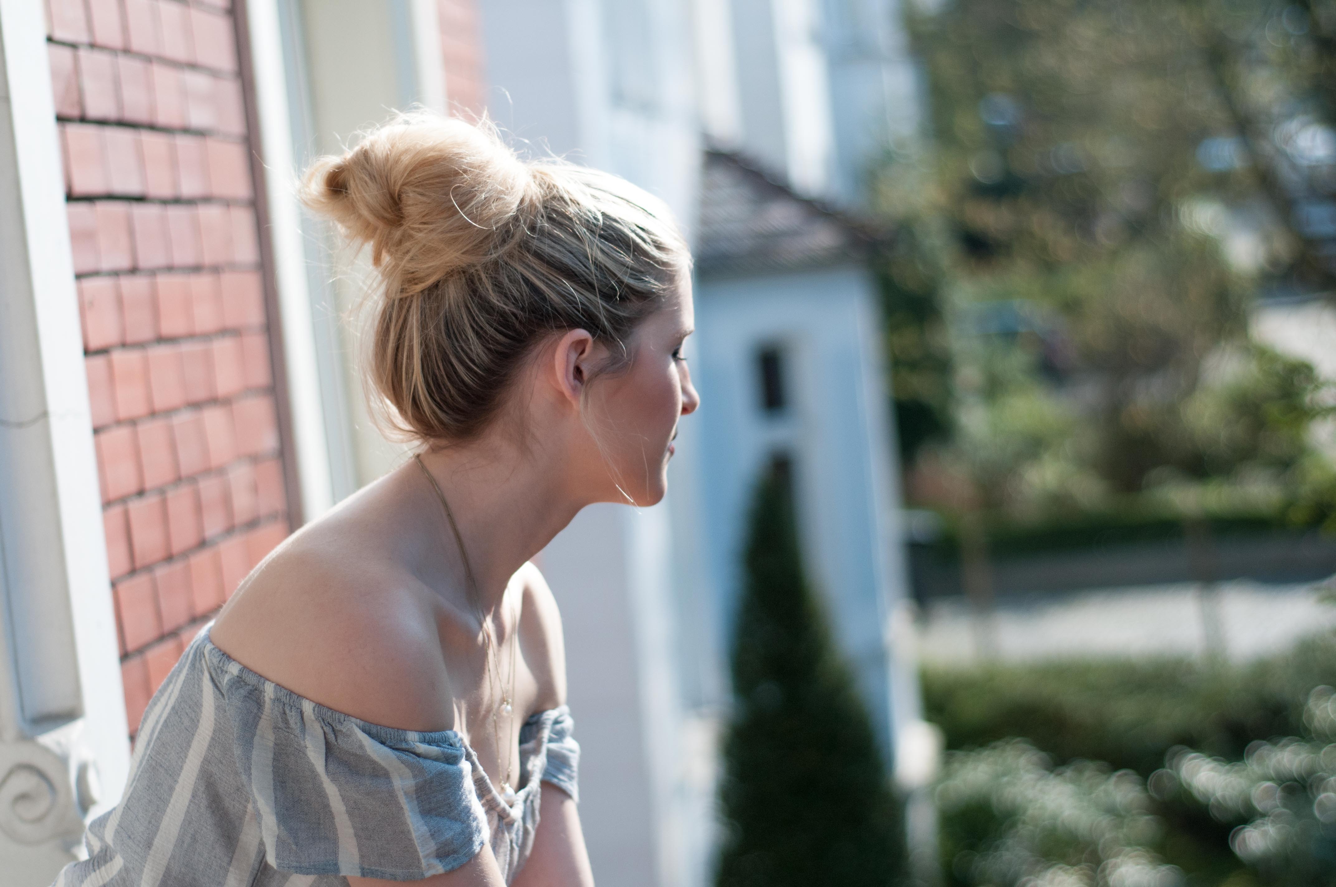 Wenn es mal schnell gehen muss! Nach dem Waschen die Haare föhnen und dabei kneten, eventuell Schaumfestiger verwenden, damit die Haare griffiger werden. Nachdem die Haare trocken sind am besten ein Spiral-Haargummi verwenden. Das schont die Haare und lässt eine lässigere Optik zu. Das Haar zwirbeln und zu einem Knoten formen und mit dem Haargummi befestigen. Abstehende Härchen mit Klammern und Haarspray fixieren. Einzelne Strähnchen aus der seitlichen Partie herauslösen – fertig ist der Look!