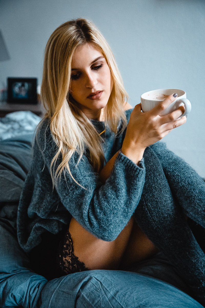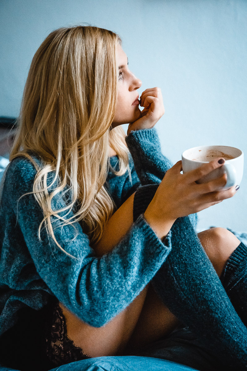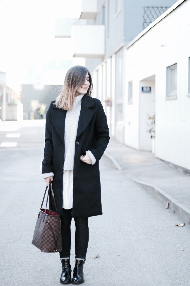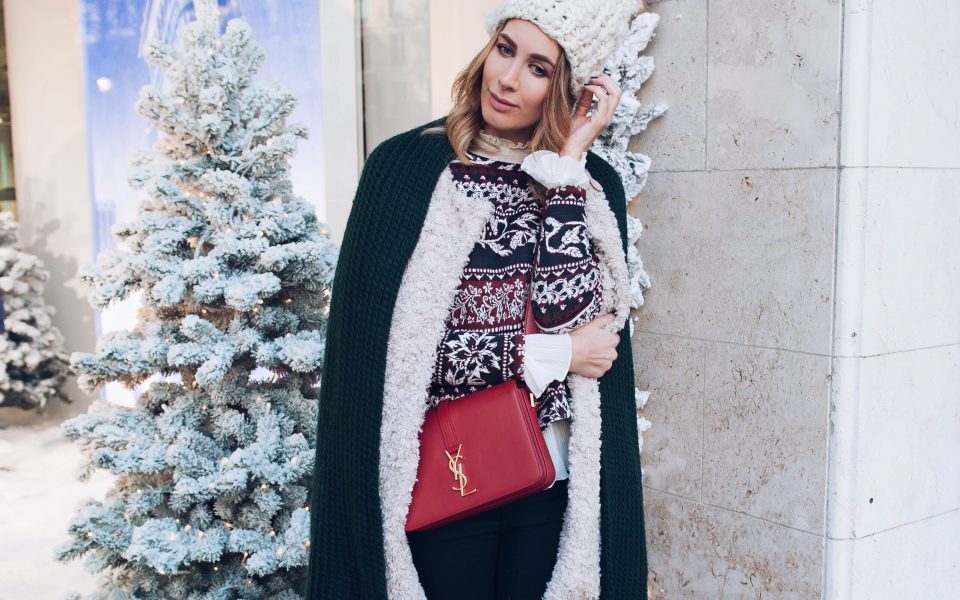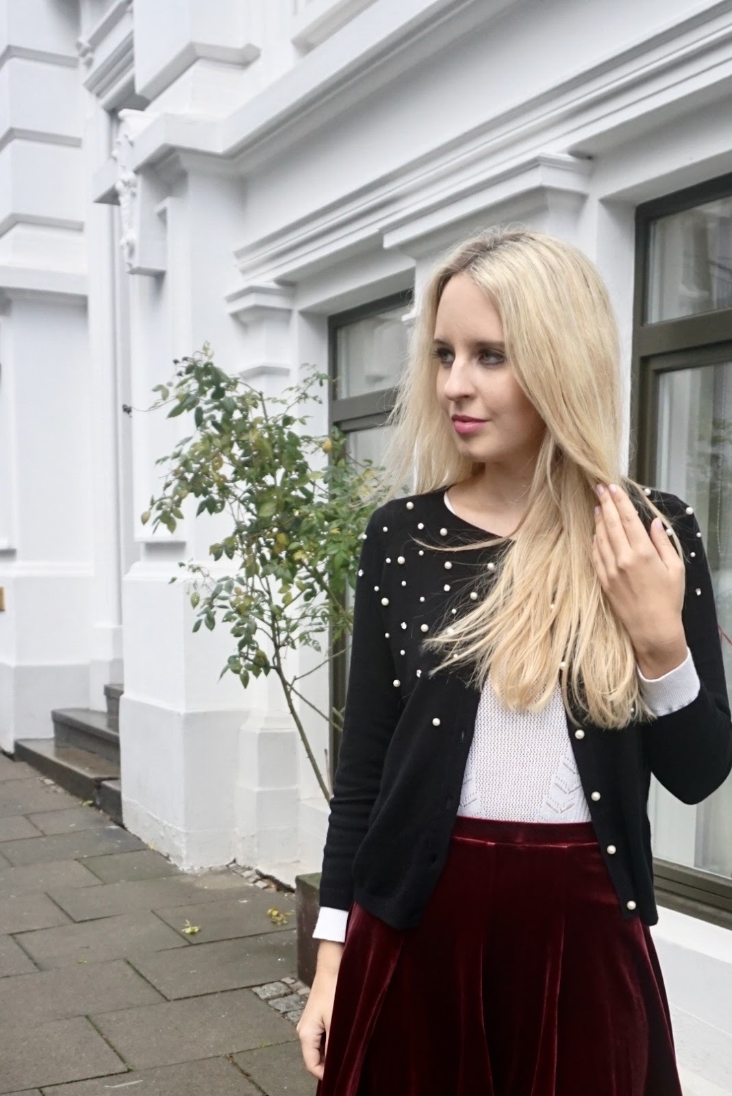 Weihnachten steht vor der Tür! Die Geschenke sind verpackt, das Menü geplant und die Weihnachtskarten verschickt. Aber mit einem Blick in den Kleiderschrank bricht die große Panik aus. Das passende Outfit hast du nicht parat? Unsere Blogroll hat diesen Montag gestartet und wie Ihr der Überschrift entnehmen könnt, dreht sich alles rund um den perfekten X-Mas Look, bei dem Ihr bestimmt, die ein oder andere Idee aufgreifen könnt. Für mich geht es an Weihnachten zu meiner Familie nach Süddeutschland. Wir genießen die Feiertage und lassen es ruhig angehen. Mit Religion hat meine Family nichts am Hut – daher gehen wir auch nicht traditionell in die Kirche. Für uns steht die Zeit mit der Familie an erster Stelle. Es wird üppig gegessen, viel gequatscht und irgendwann folgt die Bescherung. Daher fällt mein Weihnachtslook, bestehend aus einem Samtplaysuit, Overkneestrümpfe und einem kuscheligen Oversize-Pullover, auf den ersten Blick sehr entspannt aus. Das raffinierte an dem Outfit: lässt man den Pullover weg, ersetzt die Socken durch Overknees und kombiniert eine Kunstfelljacke – ist der Look partytauglich. Sollte Euch die Idee eines flexiblen Weihnachtslooks gefallen, dann hinterlasst mir doch gerne einen Like oder Kommentar.