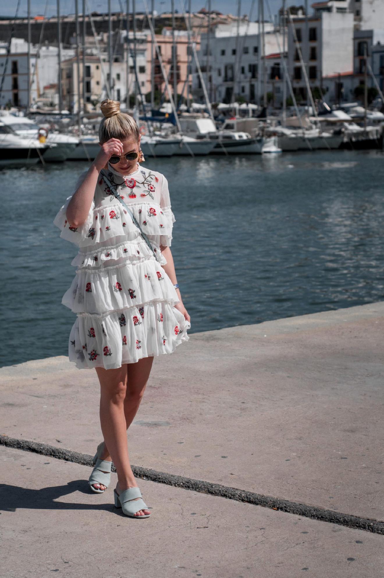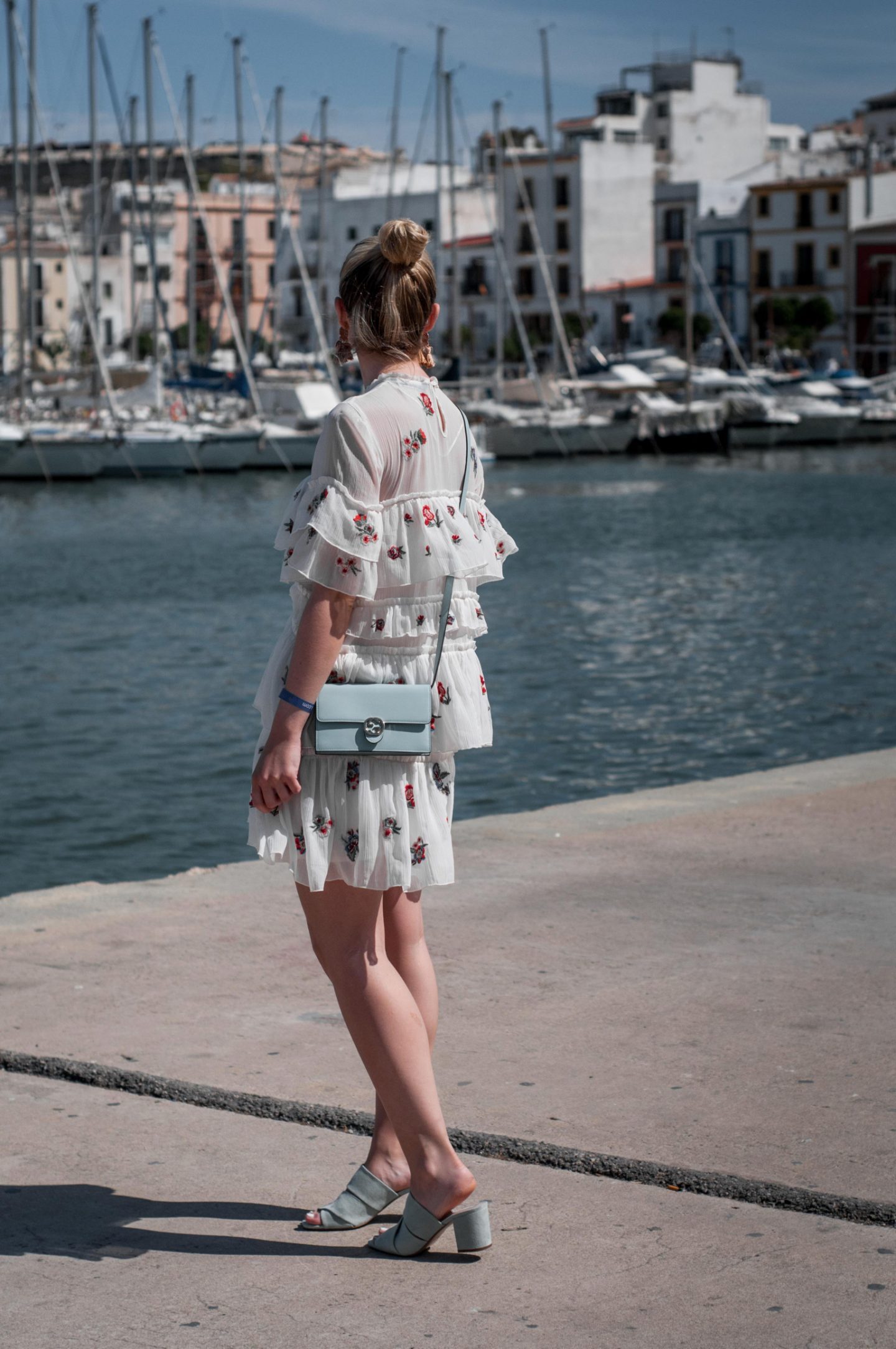 Für unseren Ibiza Trip hatte ich mir ein besticktes Volant-Kleid gekauft, was man auch super zu einer schicken Beach-Party tragen kann. Um den Look noch etwas schicker zu gestalten, habe ich mich für Sandalen in Türkis mit Absatz im 70er Jahre Look entschieden. Farblich passend dazu trage ich eine Gucci Umhängetasche. Meine Ohrringe mit Quasten runden den Boho-Style ab. Mein Ibiza-Guide folgt spätestens in zwei Wochen. Ich bin gespannt auf Euer Feedback zu meinem Boho-Look.