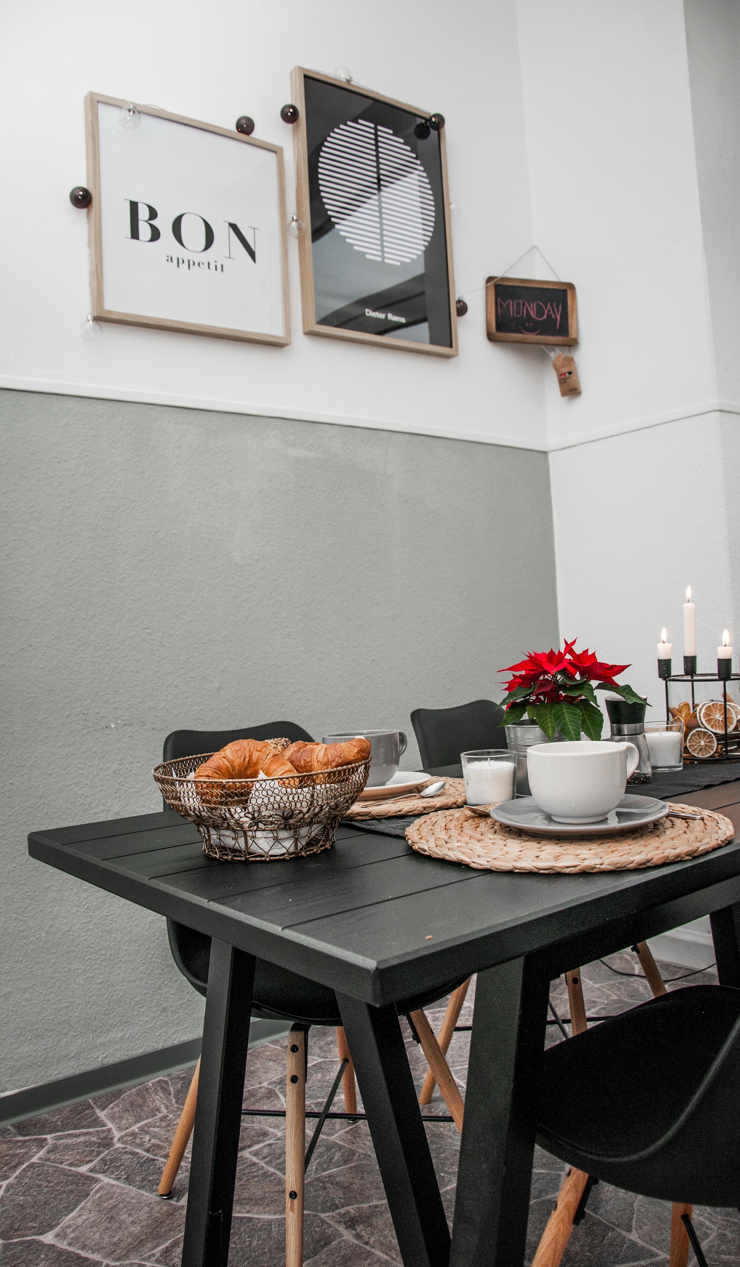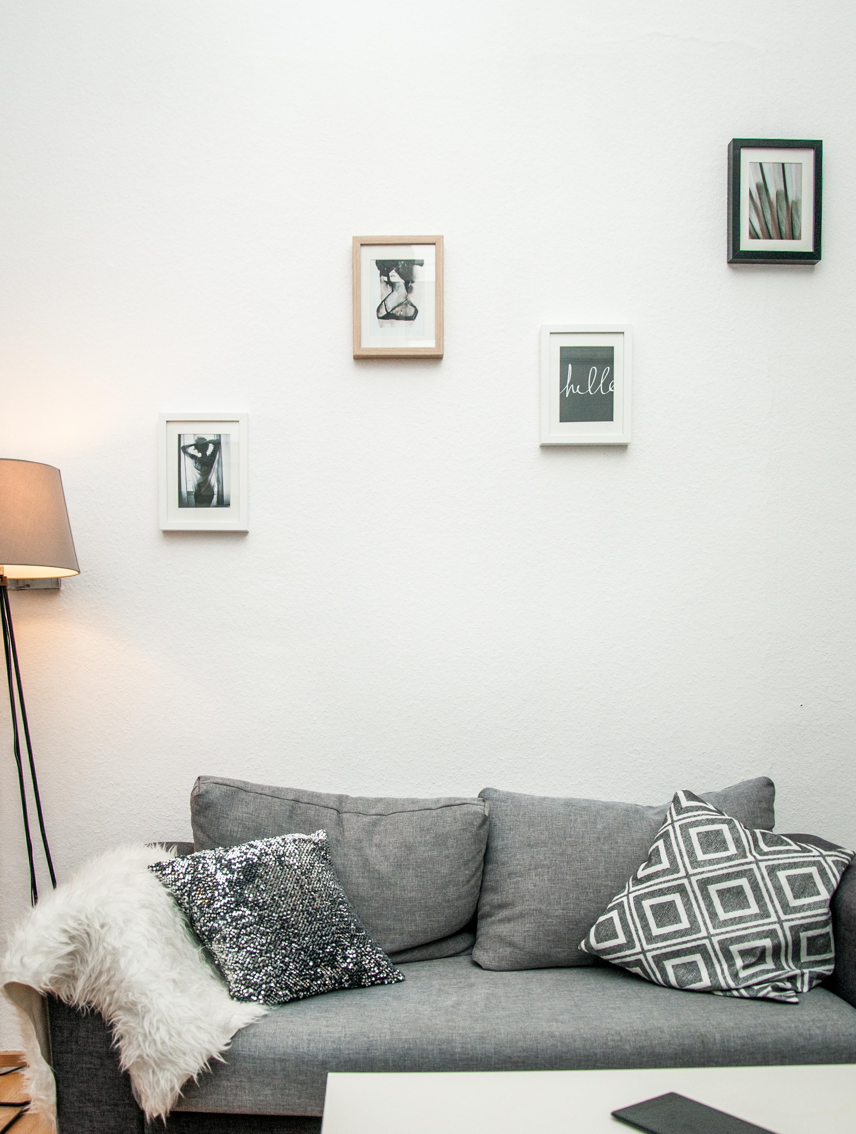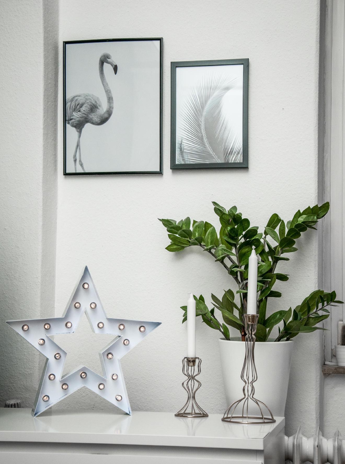Kommen wir zu meiner Wohnung: ich wohne in einem Altbau mit extrem hohen Decken – die ich über alles liebe! Das Schönste an der Wohnung ist aber definitiv die Eingangstür! Mit ihren bunten Gläsern erinnert sie mich an Kirchenfenster! Der einzige Nachteil: sie isoliert nicht richtig und im Winter zieht die Kälte in die Wohnung! Ansonsten würde ich auch nie wieder eine Wohnung ohne Balkon beziehen – außer die Wohnungssuche ist wirklich aussichtlos! Im Sommer ist es super nach der Arbeit noch die Abendsonne zu genießen und wenigstens etwas vom schönen Wetter zu haben. Beim Thema Deko lege ich Wert auf minimalistische Dinge wie Kerzenständer mit Drahtgestell, Lampen mit Metallgestell oder transparentem Fuß und klare Bilder an der Wand – am liebsten schwarz/weiß! Schaut doch mal bei Posterlounge vorbei, fast alle meine Bilder habe ich dort gefunden! Schnelle Lieferung und tolle Bildqualität!