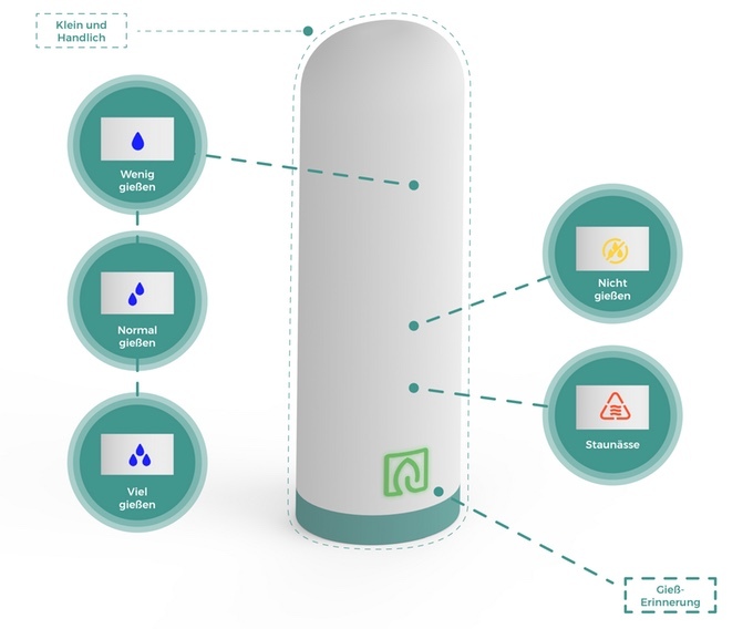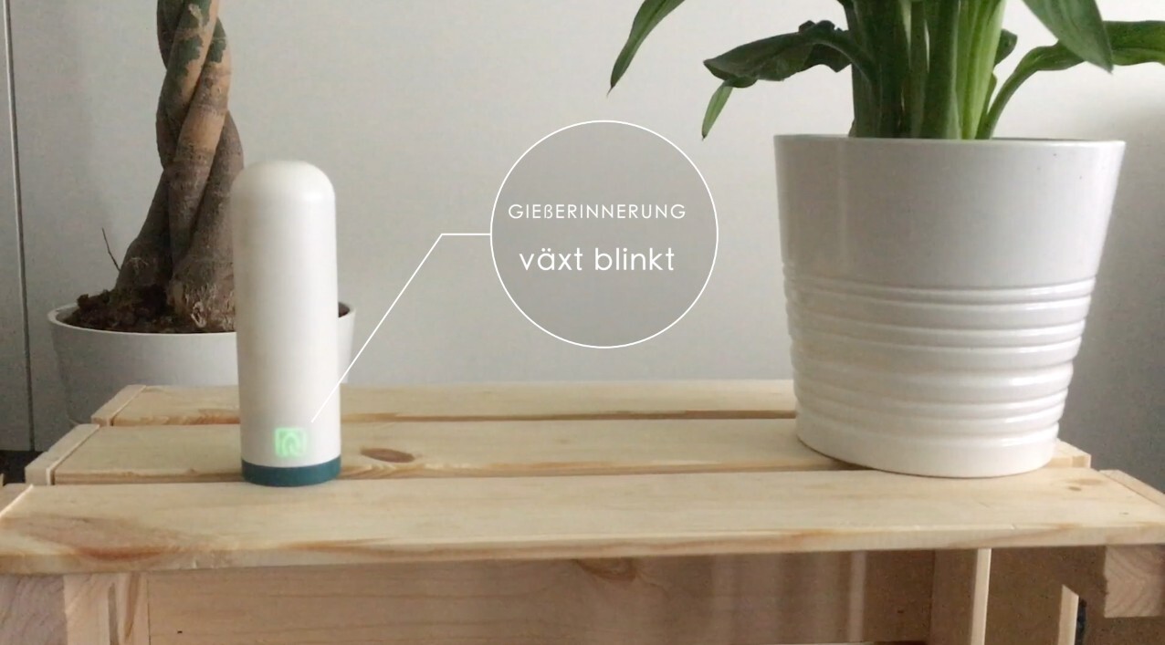 Tadaaaa seit Mai 2017 gibt es den Prototyp! Das Start-up Växt hat eine intuitive Gießhilfe entwickelt, die auf sich aufmerksam macht, sobald die Pflanze Wasser benötigt. Das Tool besteht aus der Steuereinheit Växt und einzelnen Sensoren, die im Blumentopf stecken. Über die Sensoren misst Växt die Feuchtigkeit in den Pflanzentöpfen. Einmalig muss die Pflanze einem Pflanzentyp zugeordnet werden und ist danach ohne zusätzliche App sofort einsatzbereit. Der Växt fängt an zu blinken, sobald eine Pflanze Wasser benötigt. Hält man den Växt nun an den Sensor wird Dir angezeigt, ob und wie viel Du deine Pflanze gießen sollst.