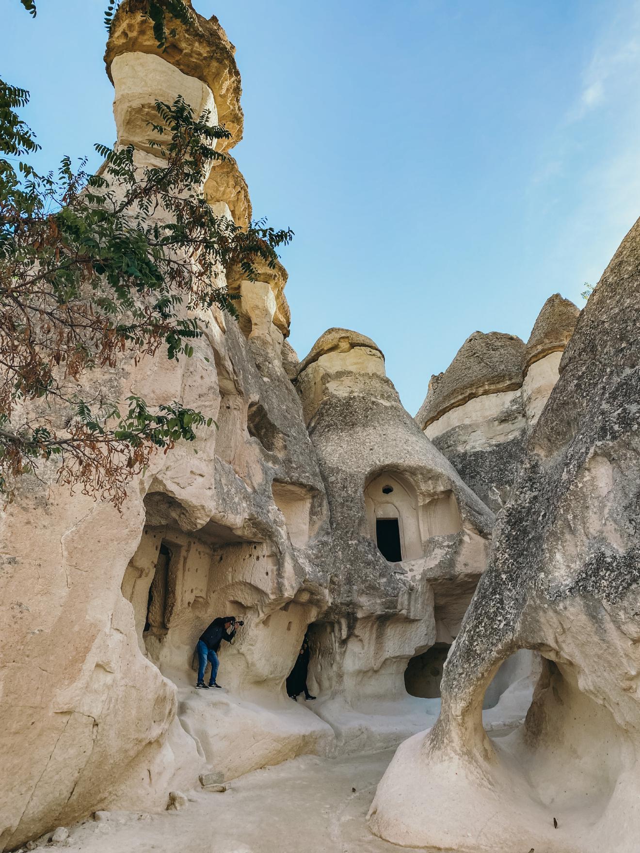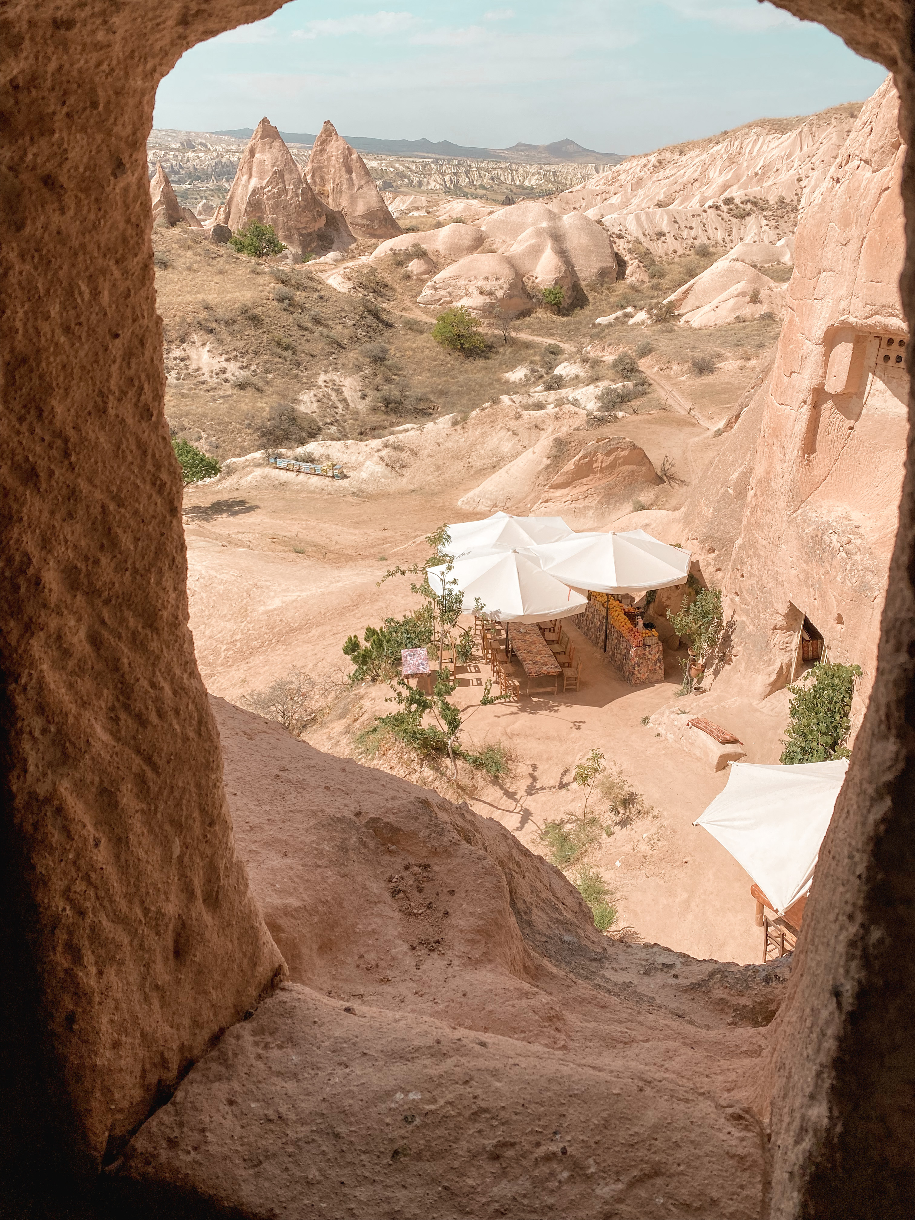 Ein absolutes Erlebnis ist der Aufenthalt in einem der sogenannten „Cave Hotels“ in Kappadokien. Wir haben im Arinna Cappadocia genächtigt und waren mehr als zufrieden. Das Zimmer hatte echten Höhlencharakter und war geräumig. Darüber hinaus bietet das Hotel eine wunderschöne Dachterrasse mit Blick auf Göreme und ein leckeres und ausgiebiges Frühstück. In Null Komma nix ist man zu Fuß auch im Zentrum und kann das Auto getrost stehen lassen. Generell empfehle ich Euch nach einer möglichst zentralen Unterkunft in Göreme, Uchisar, Cavusin oder Ortahisar zu schauen.
