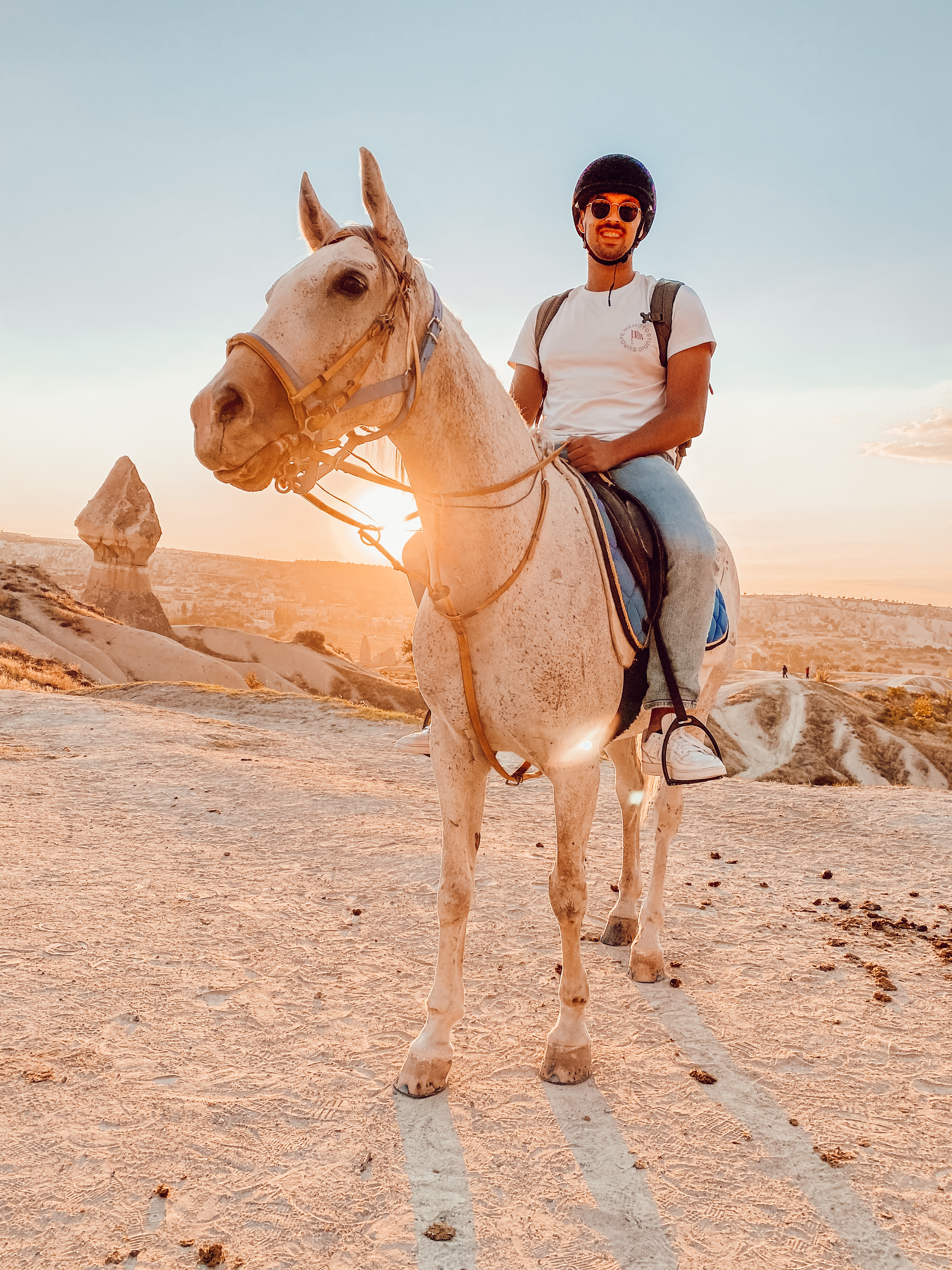 Kappadokien wird aus der persischen Sprache als Land der schönen Pferde übersetzt. Was bietet sich hier mehr an als einen Pferdeausritt zu Sonnenaufgang oder Sonnenuntergang zu Buchen. Die magischen Täler in Kappadokien sind eine grandiose Kulisse für einen unvergesslichen Ritt. Unsere Tour startete um 16.30 Uhr von der Pferdefarm in der Stadt Göreme und führt durch das Rosental und die rote Schlucht. Nach circa zwei Stunden waren wir wieder zurück. In der Nähe vom Göreme Freilichtmuseum gibt es einige Pferdefarmen: Einfach mal vorbeischauen und nachfragen, ob noch Plätze verfügbar sind. Unser Ausritt hat umgerechnet pro Person 35 Euro gekostet.
