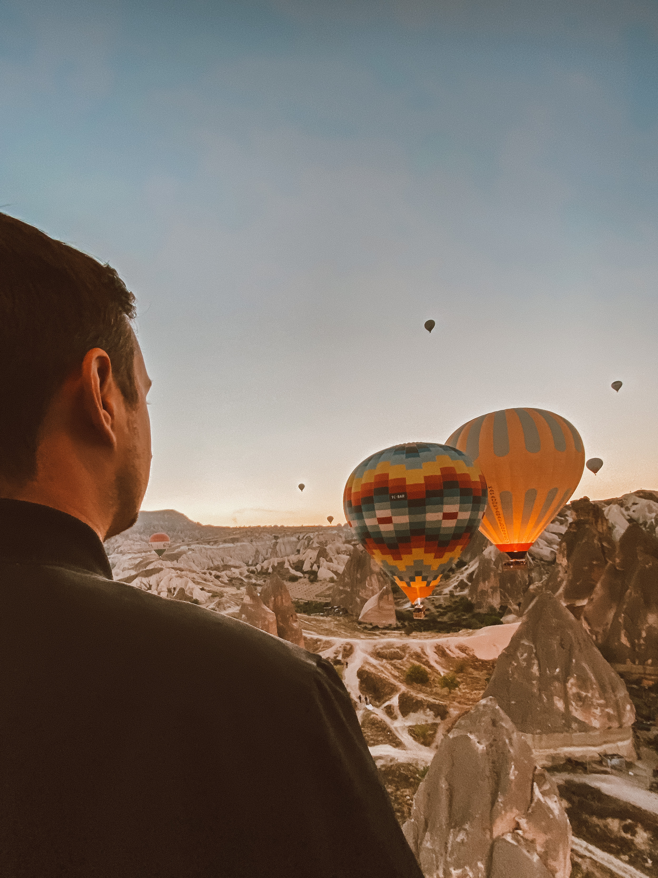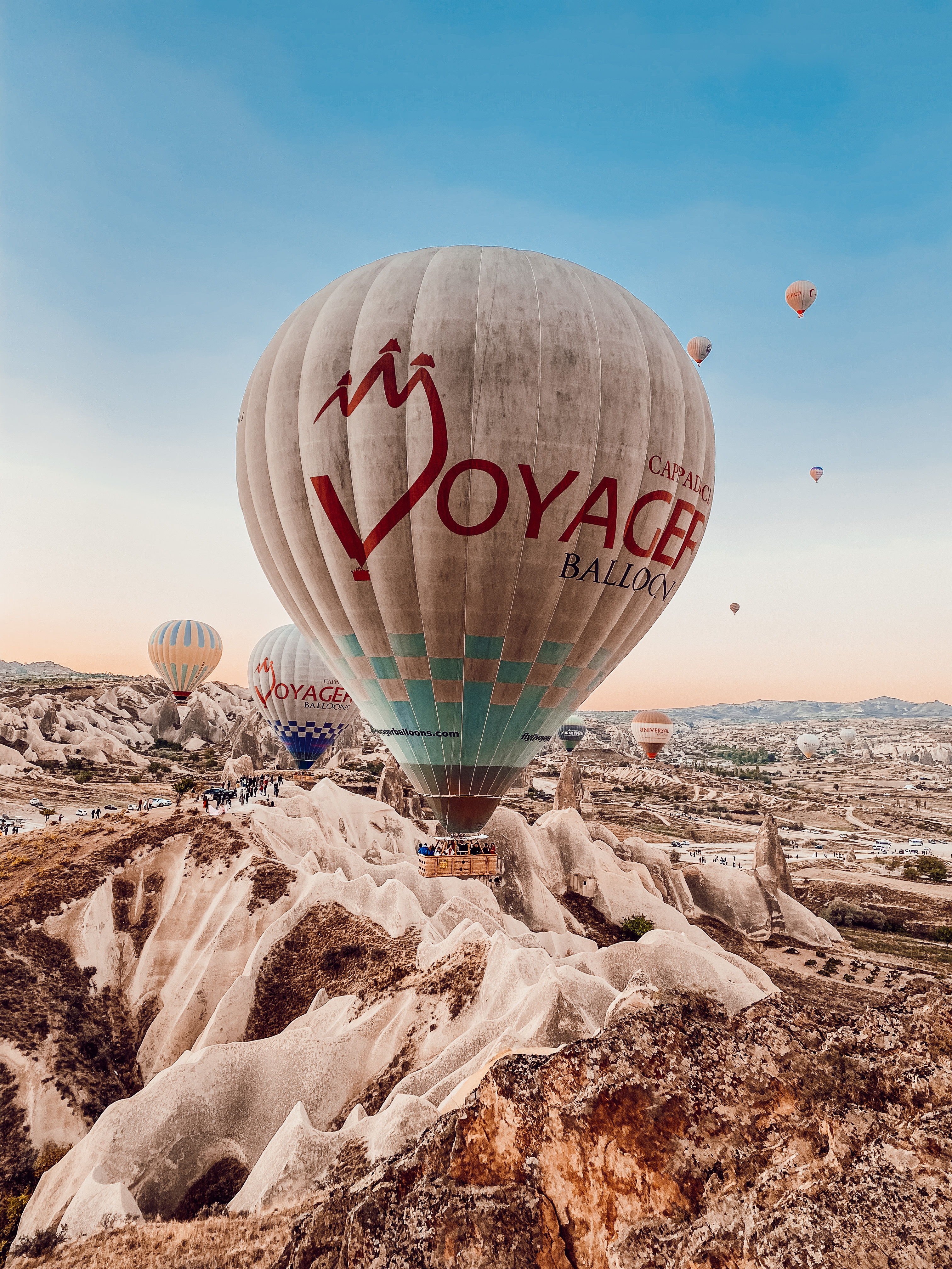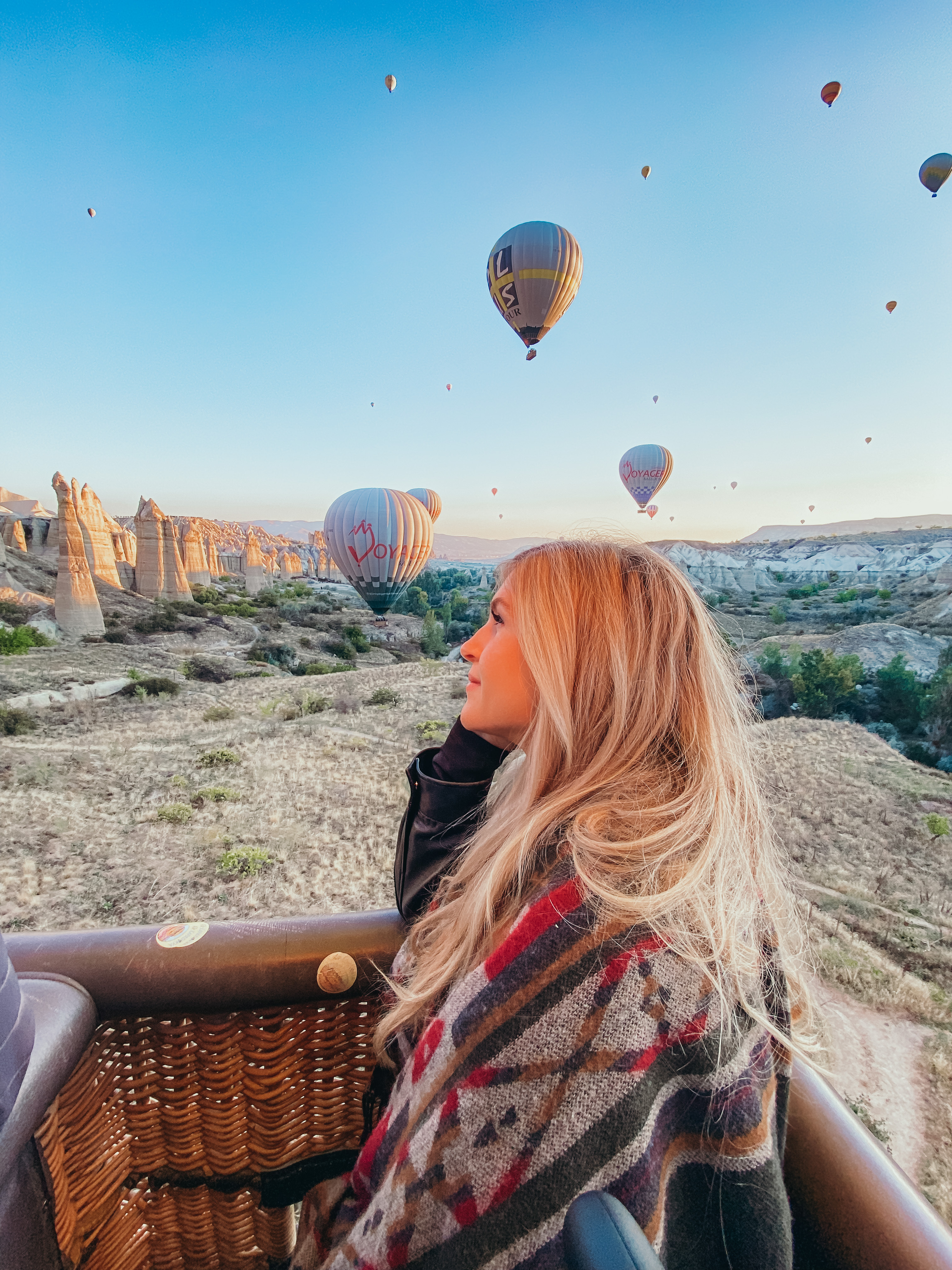 Der krönende Abschluss unserer Kappadokien Reise war definitiv die Heißluftballonfahrt. Wie ich eingangs erwähnt habe, musste die Fahrt zweimal verschoben werden aufgrund der schwierigen Witterungsverhältnisse. An unserem letzten Morgen hat es dann doch noch geklappt – direkt danach ging es für uns nämlich an den Flughafen. Wir haben pro Person 100 Euro bezahlt und direkt über unser Hotel gebucht. Die Heißluftballonfahrt war jeden Cent wert! Seht selbst: