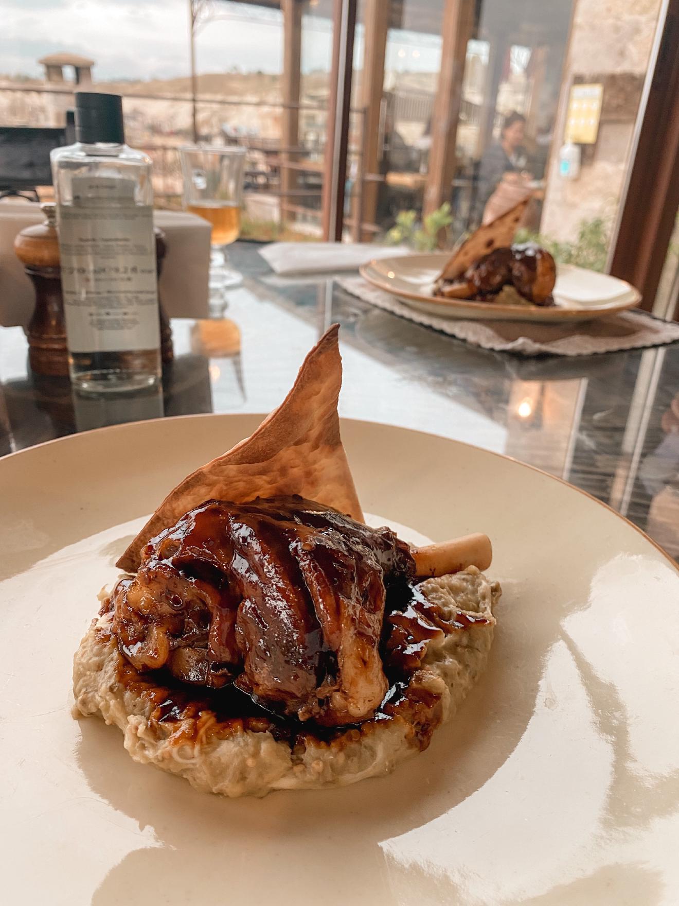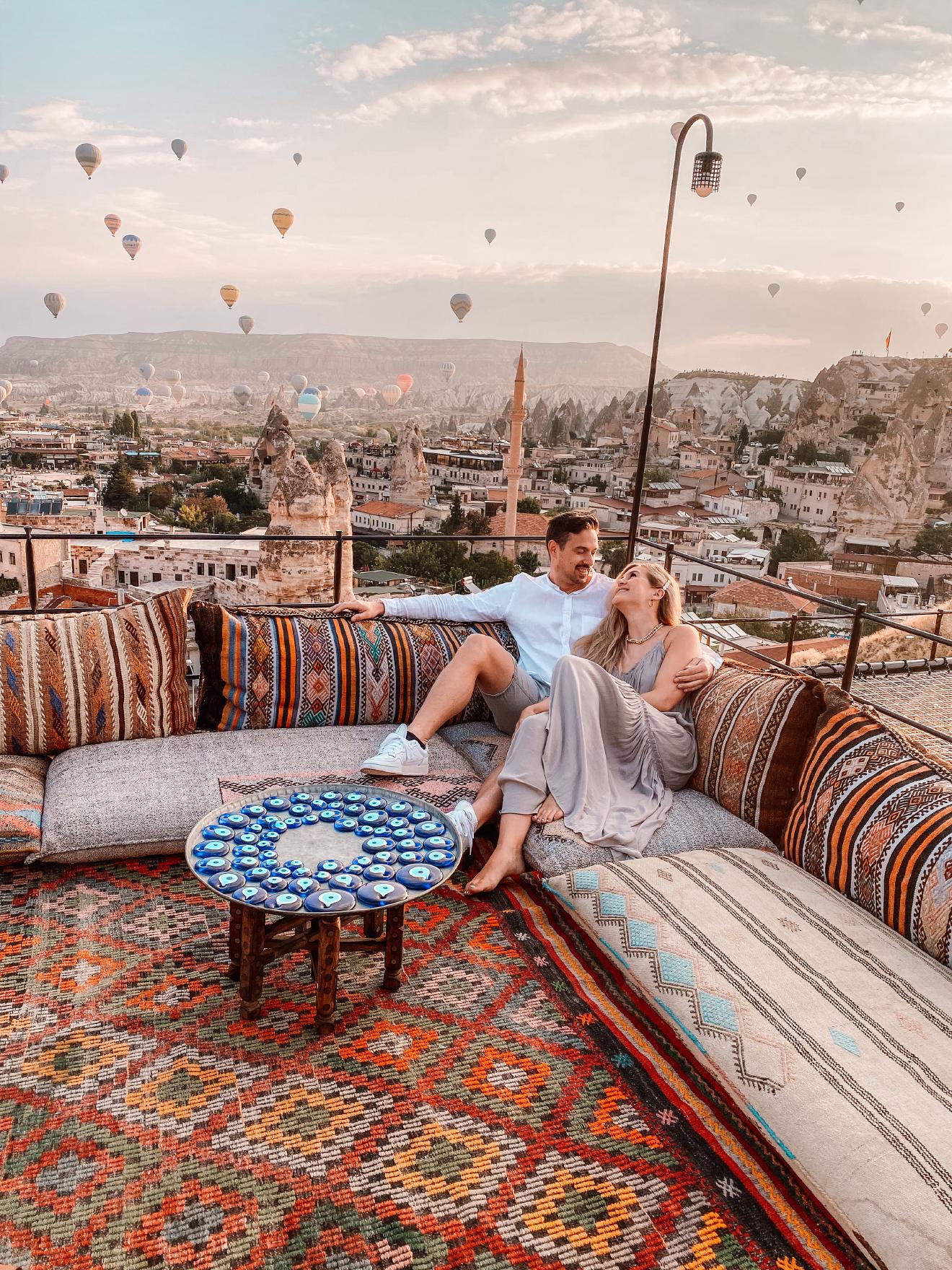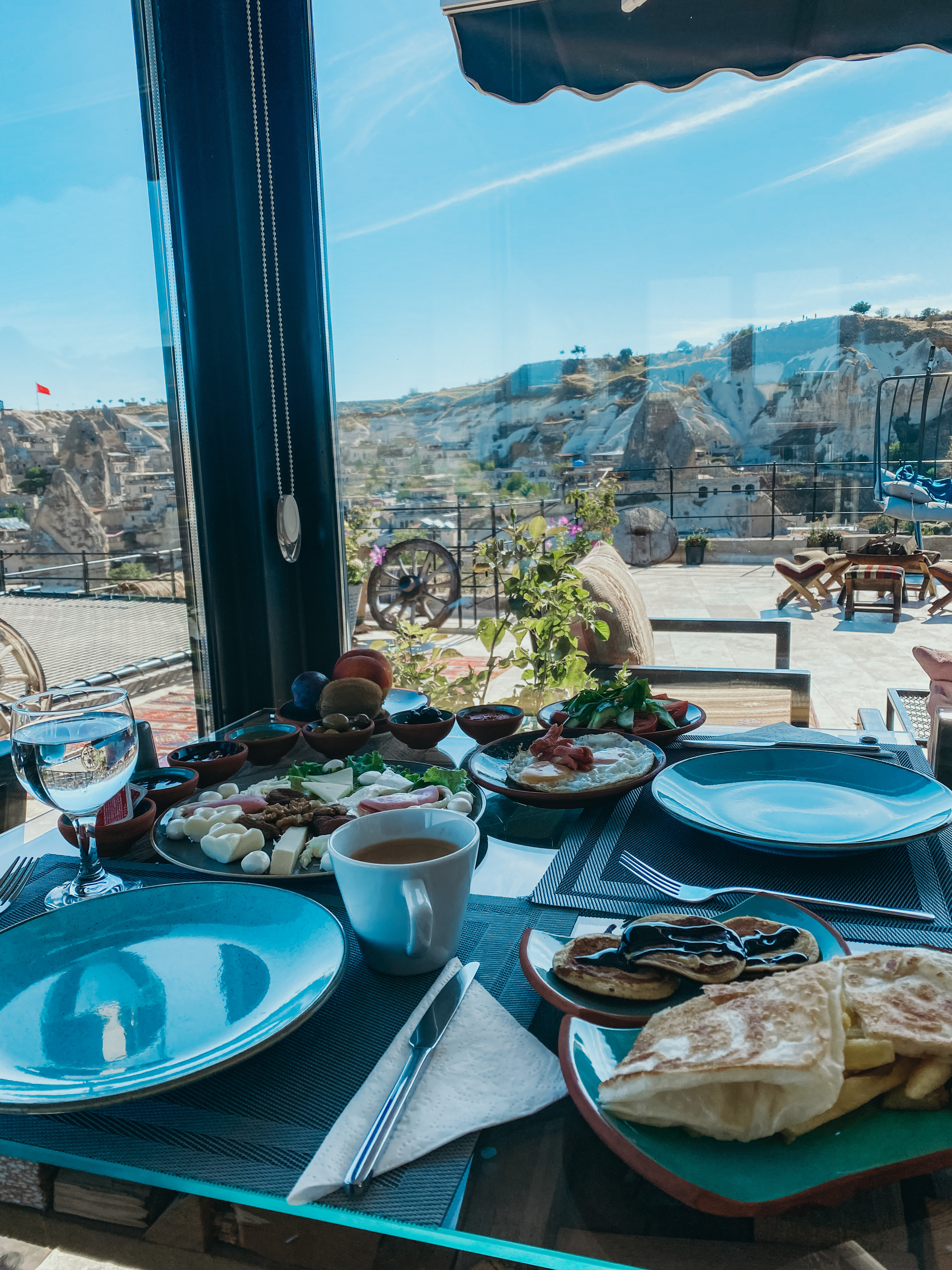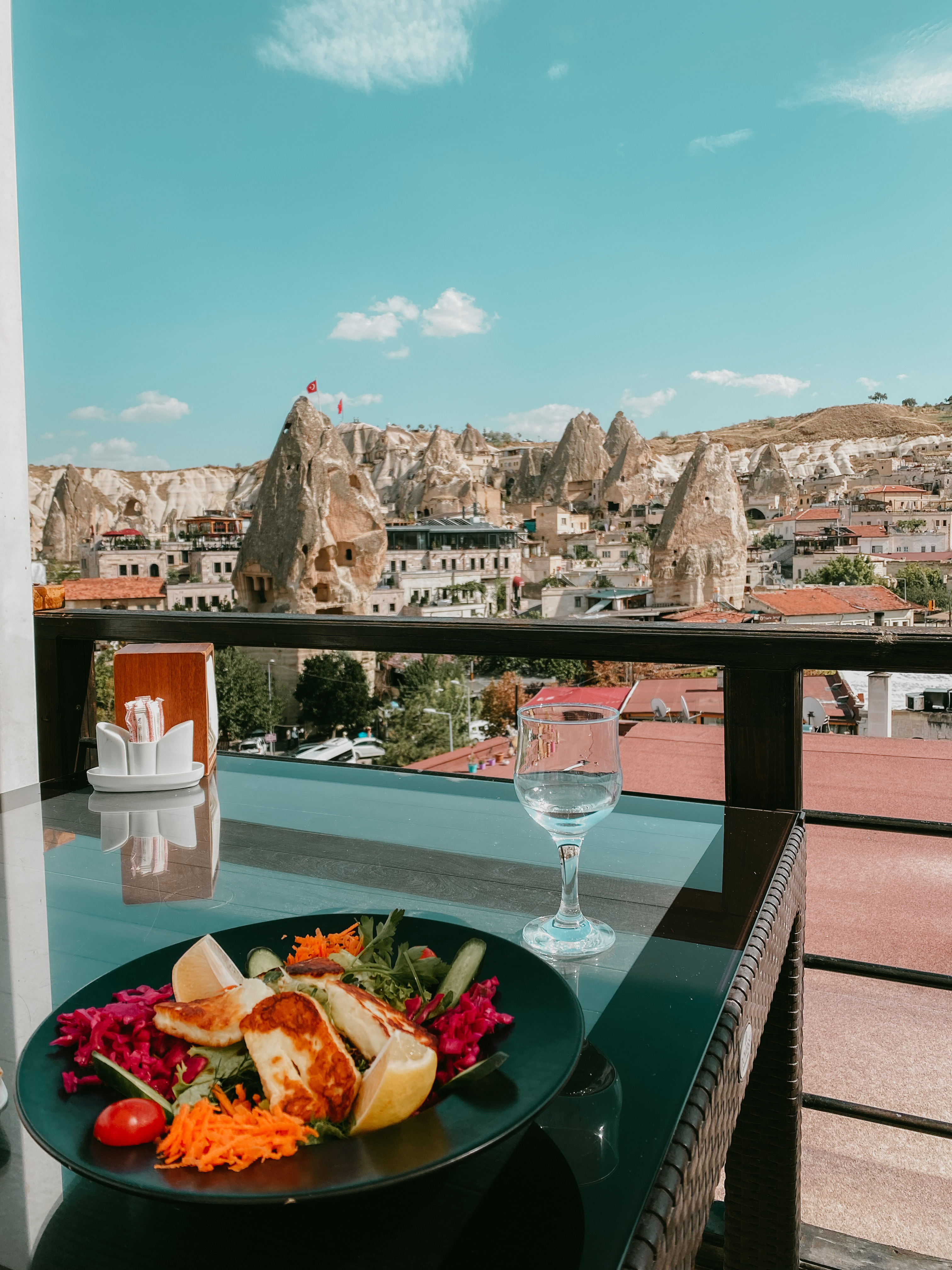 Mit Abstand das beste Restaurant in ganz Göreme: Seten Restaurant! Das Ambiente und der Blick der Rooftop Terrasse ist super romantisch. Das Essen ist einzigartig – ihr müsst unbedingt das Tahini Soufflé testen. Jedoch am besten vorher reservieren.
