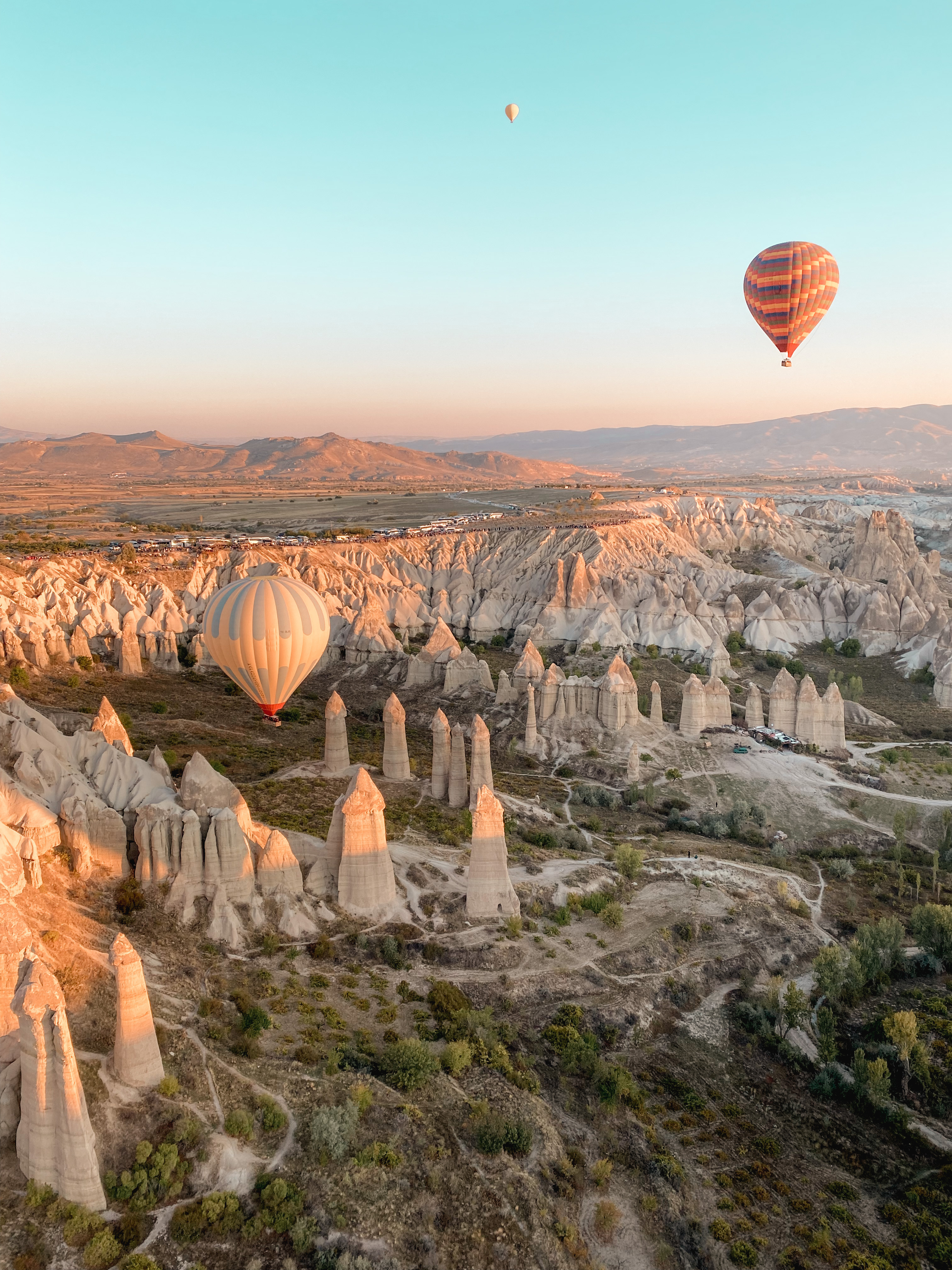 Starten wir mit der besten Reisezeit für Kappadokien. Von April bis Oktober gibt es kaum Niederschlag und stattdessen angenehm warme Temperaturen. Jedoch würde ich Euch empfehlen zwischen Juni und August zu buchen, sofern Ihr die aufsteigenden Heißluftballons miterleben möchtet. Wir waren Ende September in Kappadokien und unsere Heißluftballonfahrt musste zwei Mal verschoben werden, aufgrund von Wind und Regen, bis wir sie endlich antreten konnten.